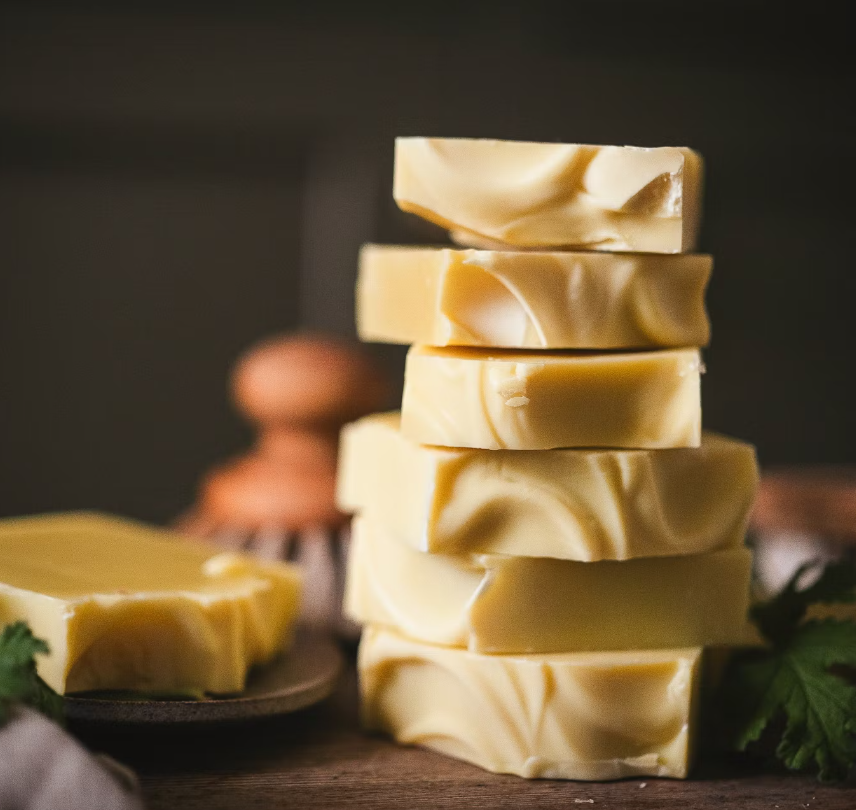 - Handgjord, kallrörd tvål med naturligt glycerin – återfuktar utan att torka ut